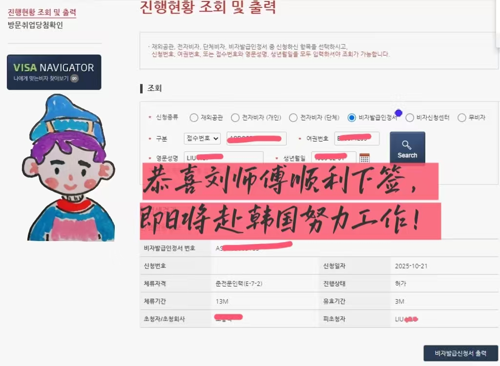好消息传来!恒德劳务合作项目的刘师傅韩国工作签证已顺利获批,即将开启赴韩高薪就业之旅。